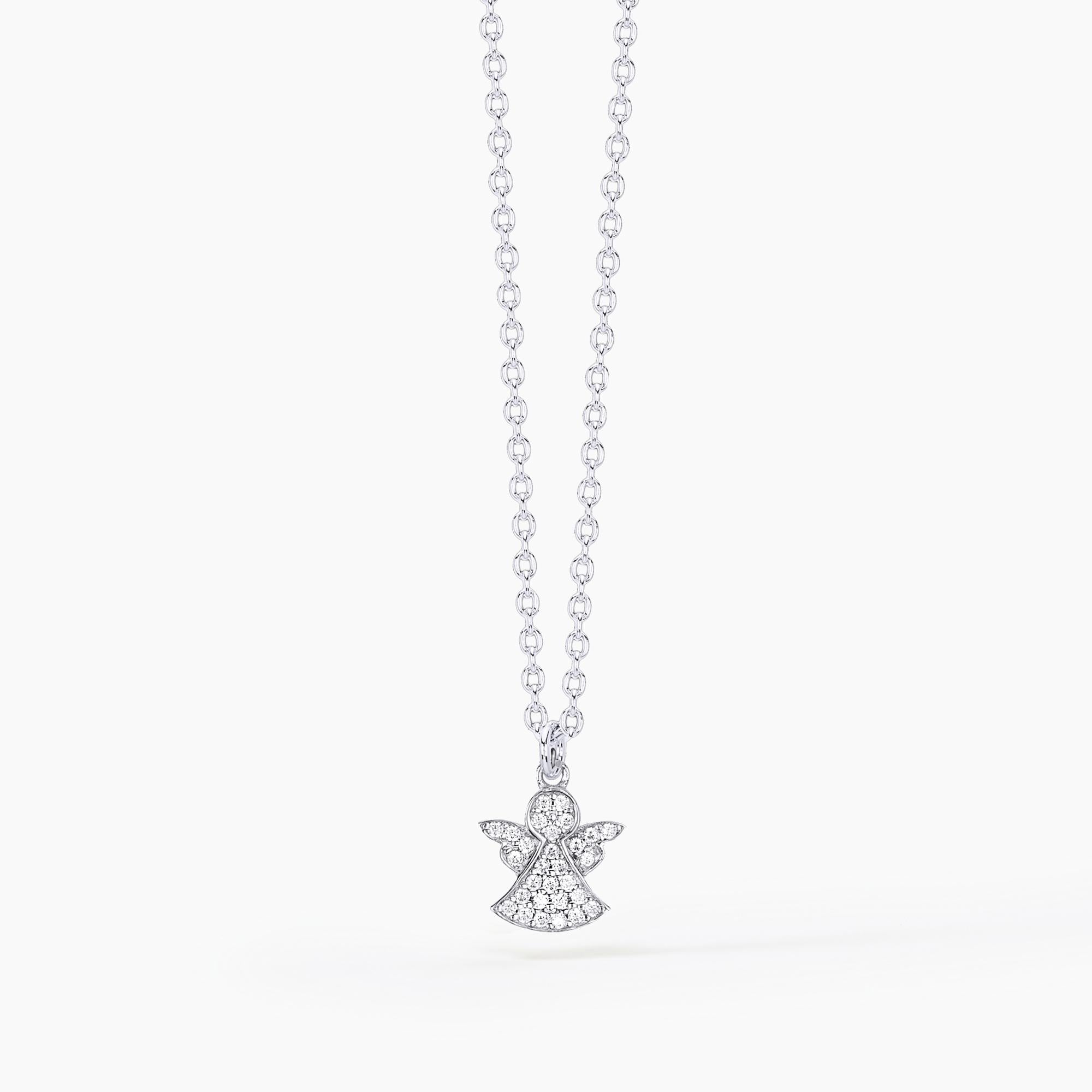 Girocollo in argento con ciondolo a forma di angelo in pavé di zirconi.