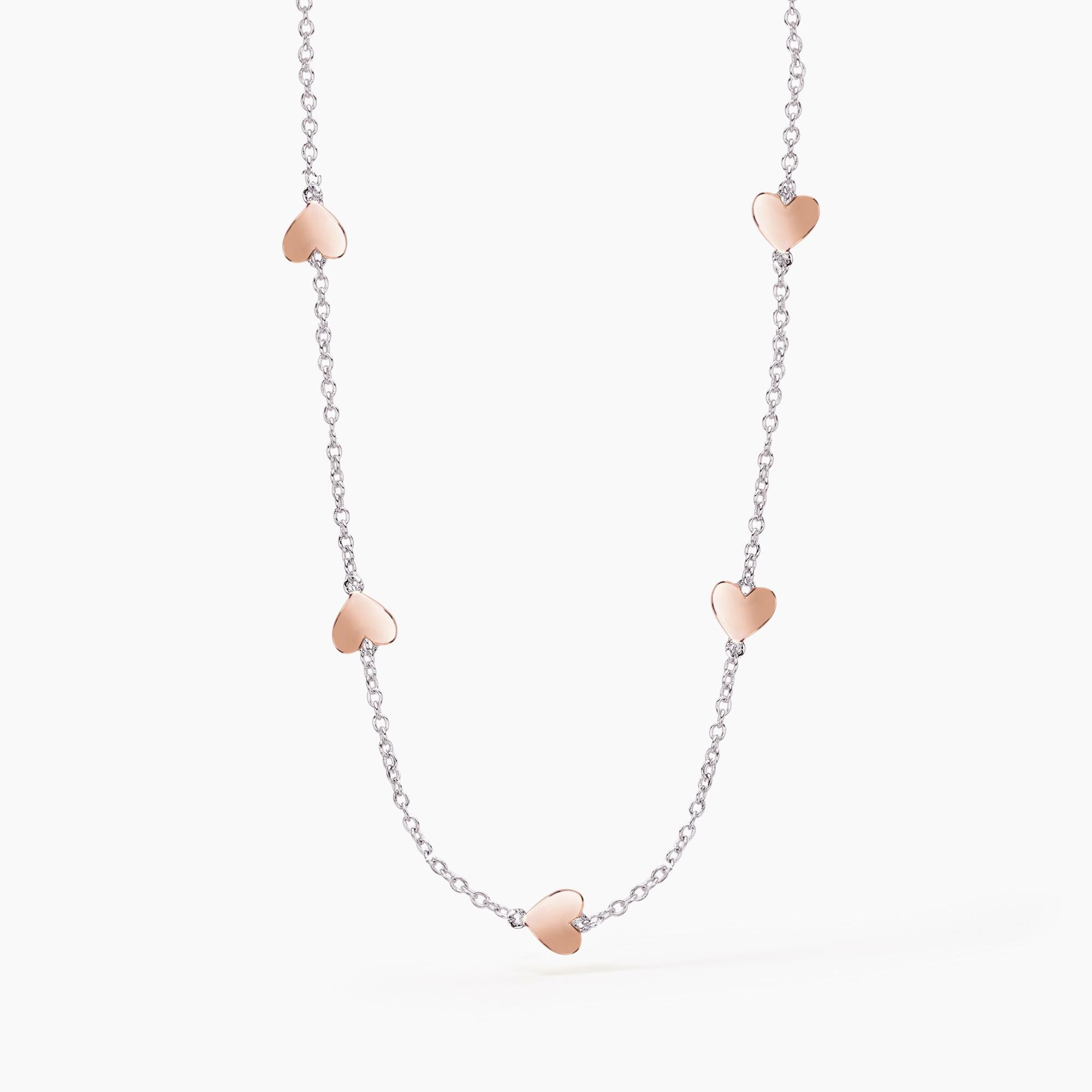 Girocollo in argento bicolore con cuori.