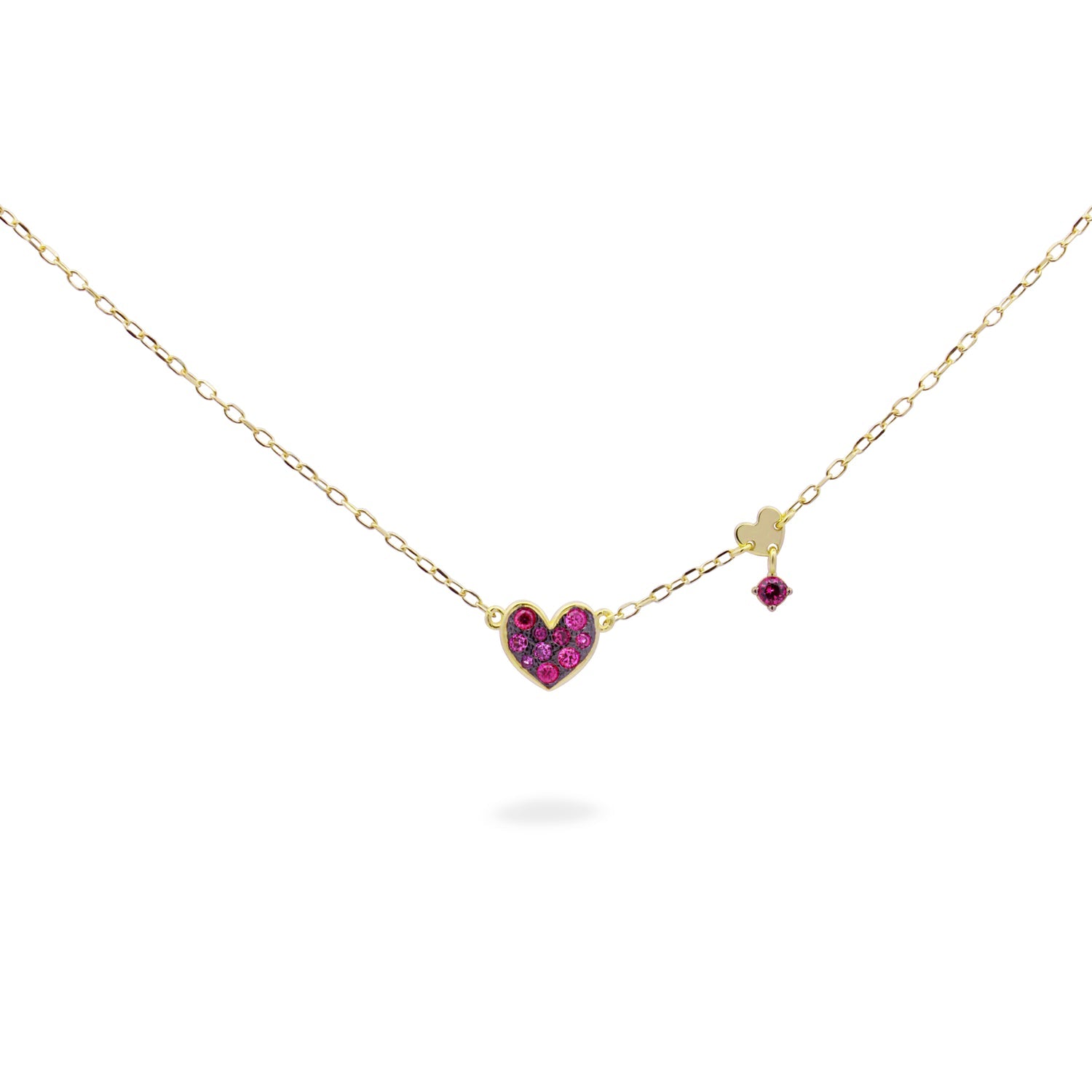 Girocollo con catena soggetto centrale con pavè colorato e mini soggetto liscio con castone pendente.