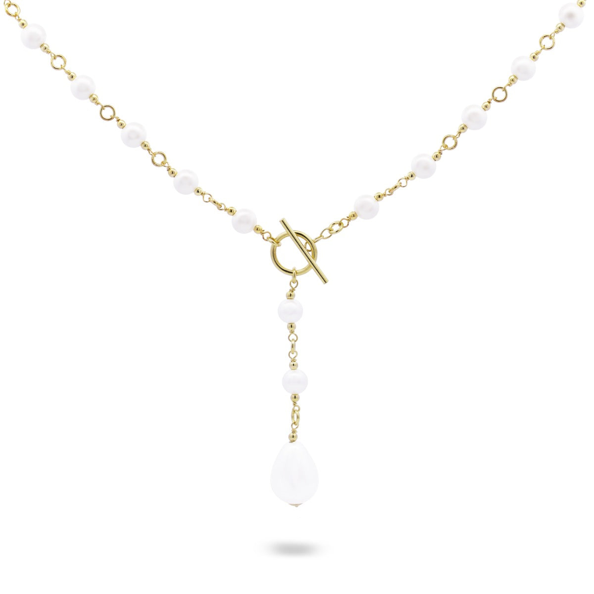 Girocollo perle di conchiglia con chiusura t-bar e perla a forma di goccia finale