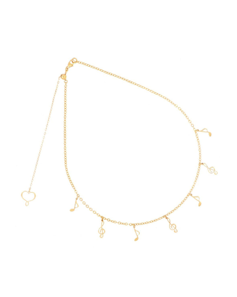 Collana girocollo della collezione Maman et Sophie Violino d'oro da donna. Colore: oro. Il gioiello è in argento 925 ‰ con galvanica oro ad alto spessore e resistenza con ciondolini a forma di note musicali e chiavi di violino che misurano 11 mm e 13 mm. La lunghezza può essere regolata fino ad un massimo di 41 cm grazie alla piccola sfera scorrevole con cuore Maman traforato.