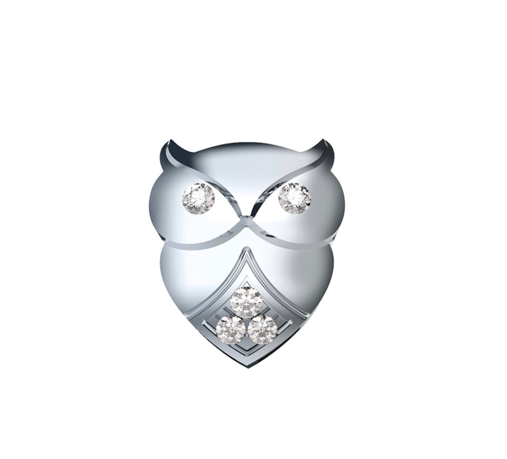 Elemento Gufo in oro bianco 18 kt e diamanti 0,02 ct.