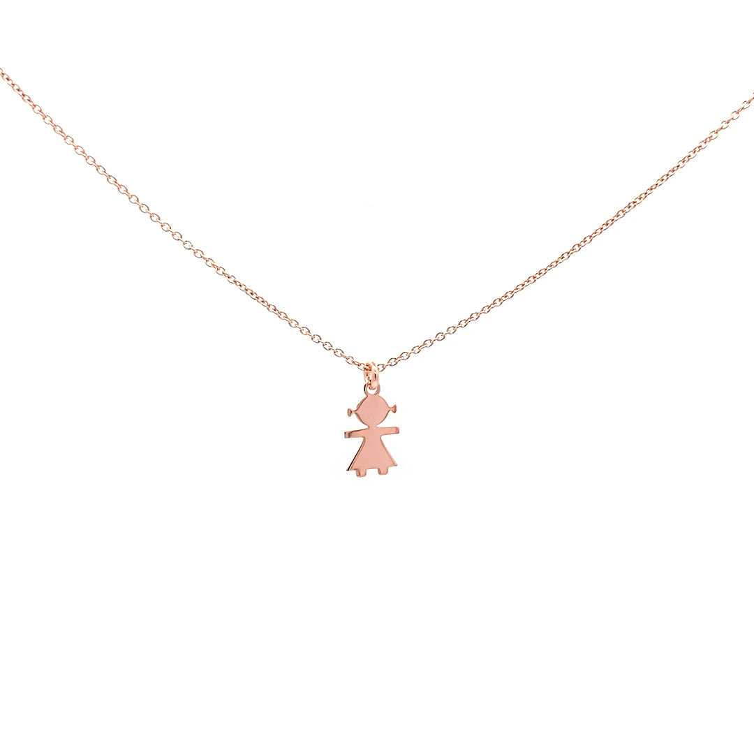 Collana pendente della collezione Rue Des Mille I Sogni Son Desideri da donna. Colore: oro rosa. Il gioiello è in argento 925‰ con placcatura oro rosa 18kt composto da catena con soggetto a forma di bimba. Misura 45 cm con chiusura a moschettone.