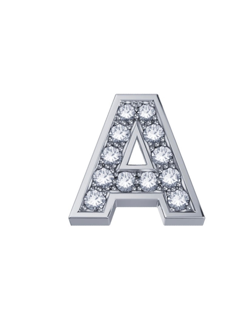 Elemento lettera A in oro bianco 18 kt e diamanti 0,02 ct.