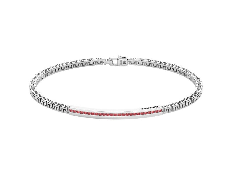 Bracciale Uomo Zancan in argento 925 impreziosito da zirconi rossi. Chiusura a moschettone Catena con maglie a lavorazione geometrica Accessorio elegante e discreto Misure 19,20,21