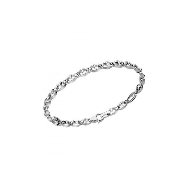 Bracciale da uomo in argento 925 collezione Insignia 925 Maglie alternate tonde e piccole, bombate e spaziate internamente Particolare maglia con pietre nere incastonate vicino alla chiusura a moschettone Misura 21cm