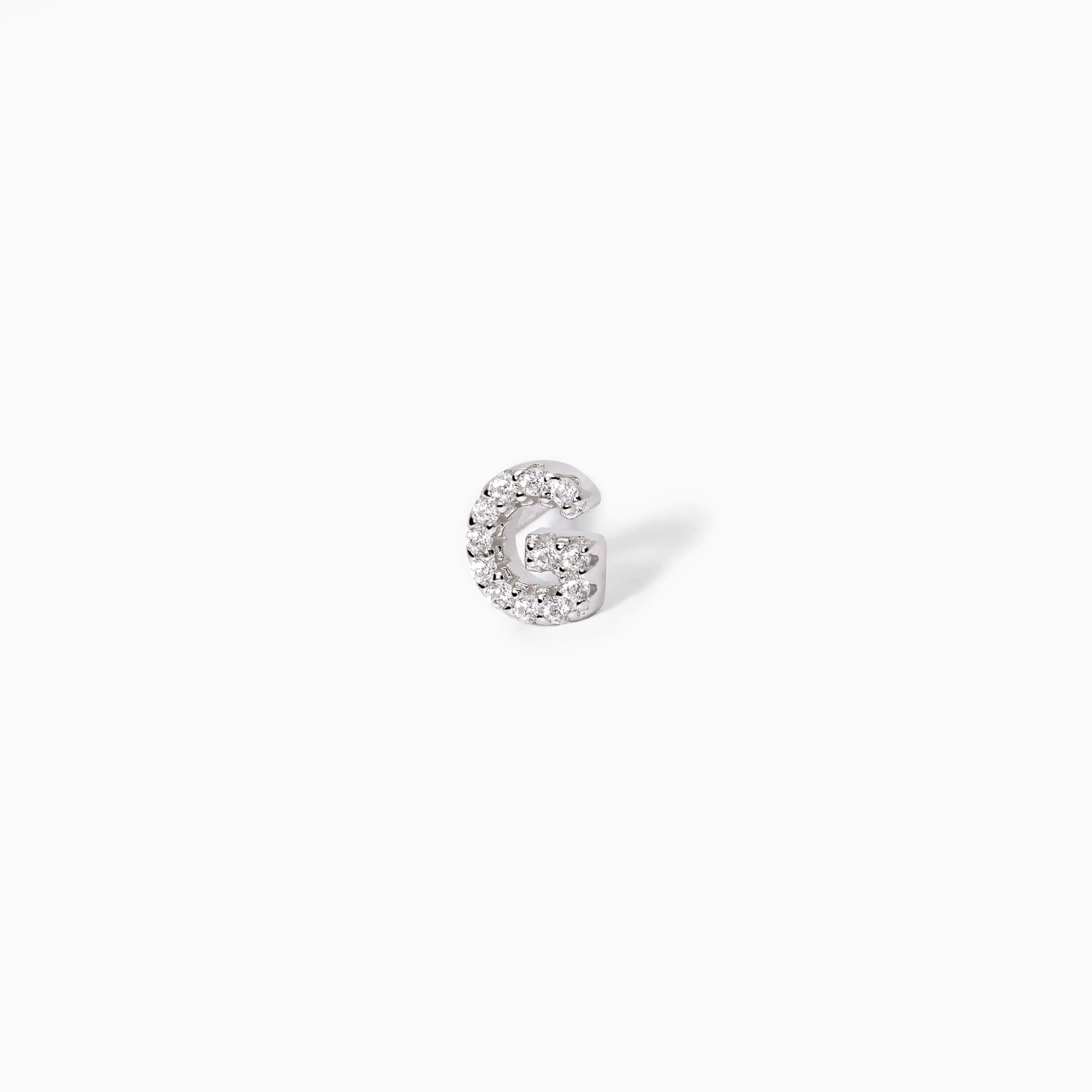 Mono orecchino a lobo in argento rodiato con lettera G in pavé di zirconi bianchi.