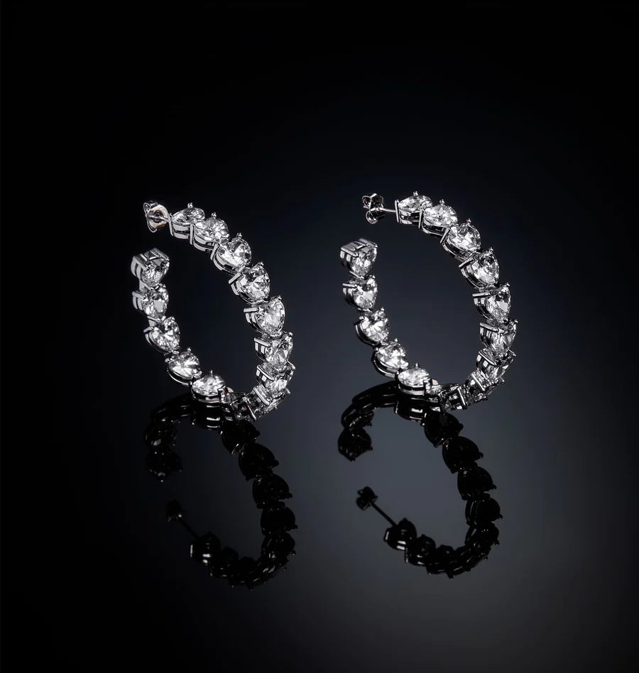 Orecchini a cerchio con zirconi bianchi a forma di cuore.