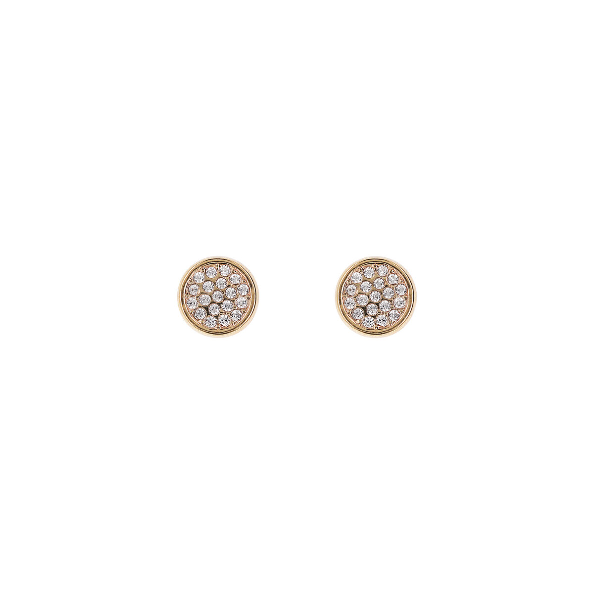 Orecchini a lobo in Oro 375/1000 con due dischi in pavé di cubic zirconia, qualità luminosa; chiusura a perno e farfalla.