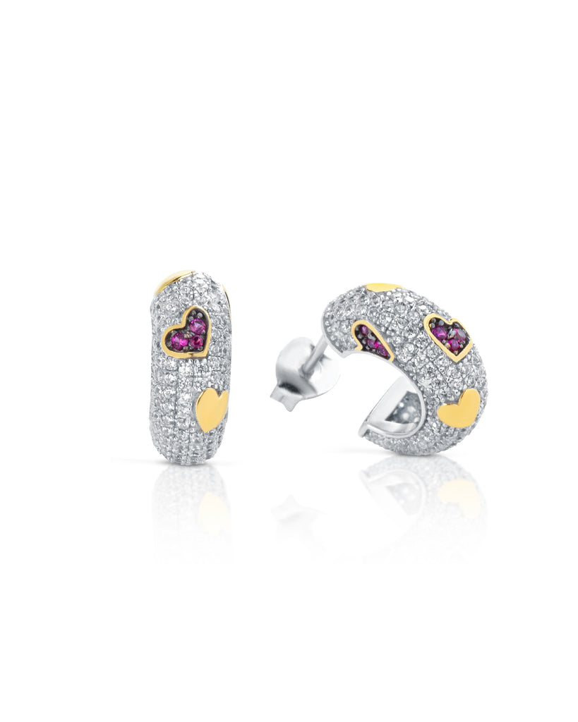 Orecchini cerchio della collezione Roberto Giannotti Angeli Argento da donna. Colore: argento e rosso. Gli orecchini sono in argento 925‰ impreziositi da zirconi bianchi e rossi con dettagli a cuore. Chiusura a perno.