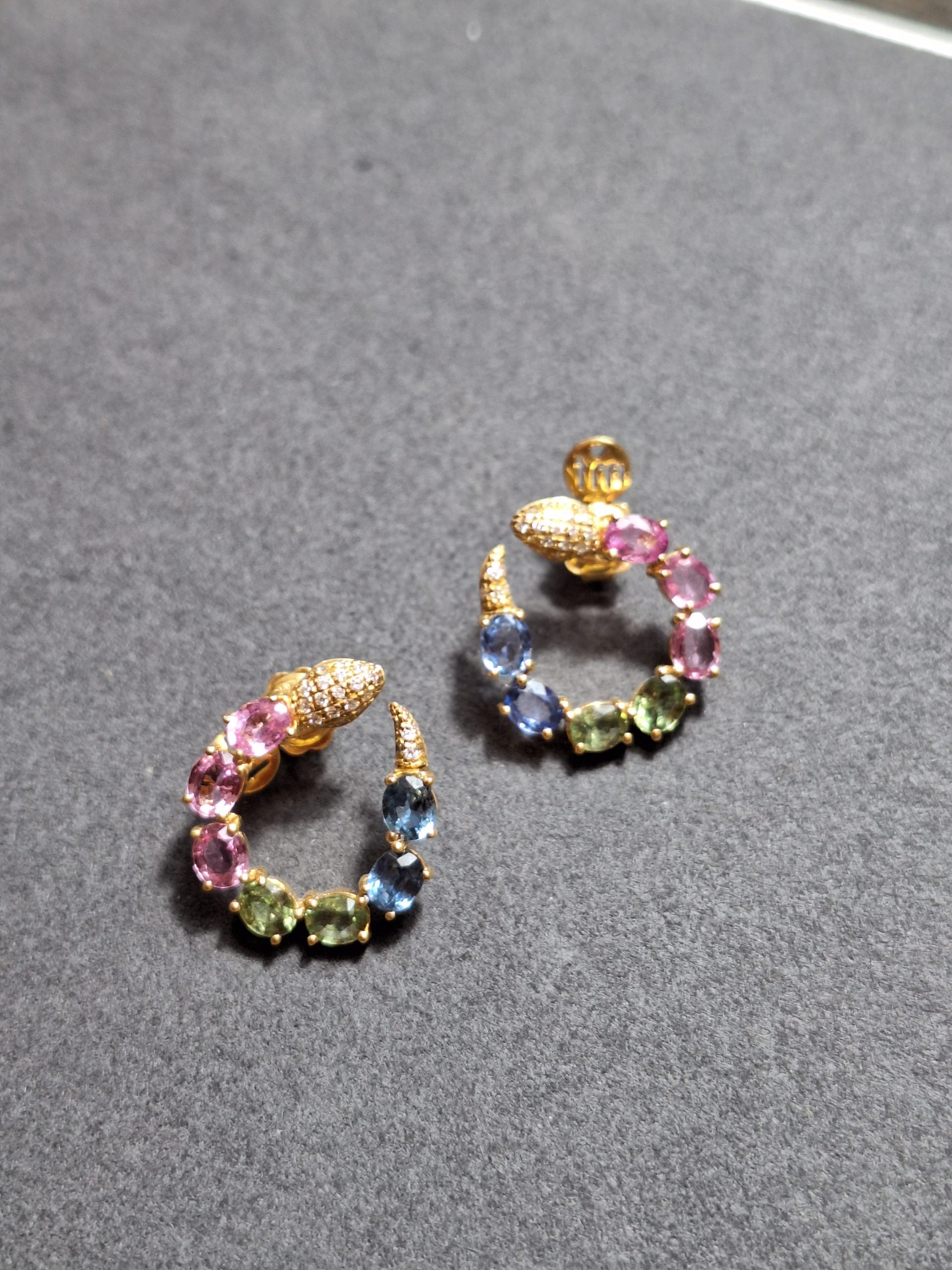 Oro 750 Brillanti 0.37ct Zaffiri Multicolor 5.60ct