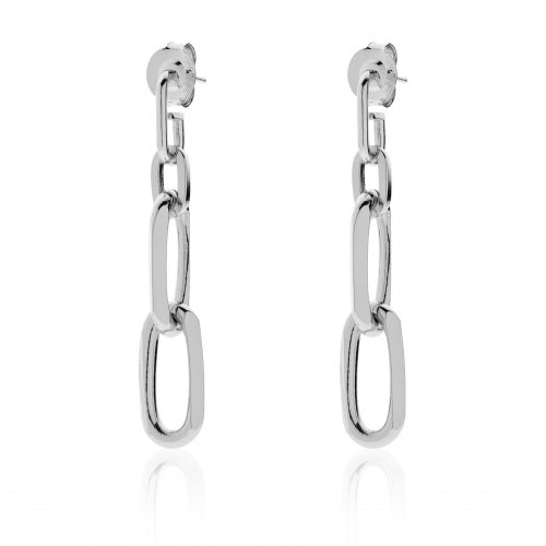 Orecchini di catena forzatina battuta in bronzo lucido con bagno in argento 925. Chiusura a perno e farfallina