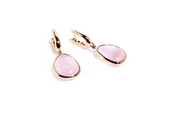 Orecchini in argento rosè 925 con quarzi idrotermali a forma di goccia. Chiusura di sicurezza a scattino. La lunghezza totale è di cm 3,5 Gioielli made in Italy.