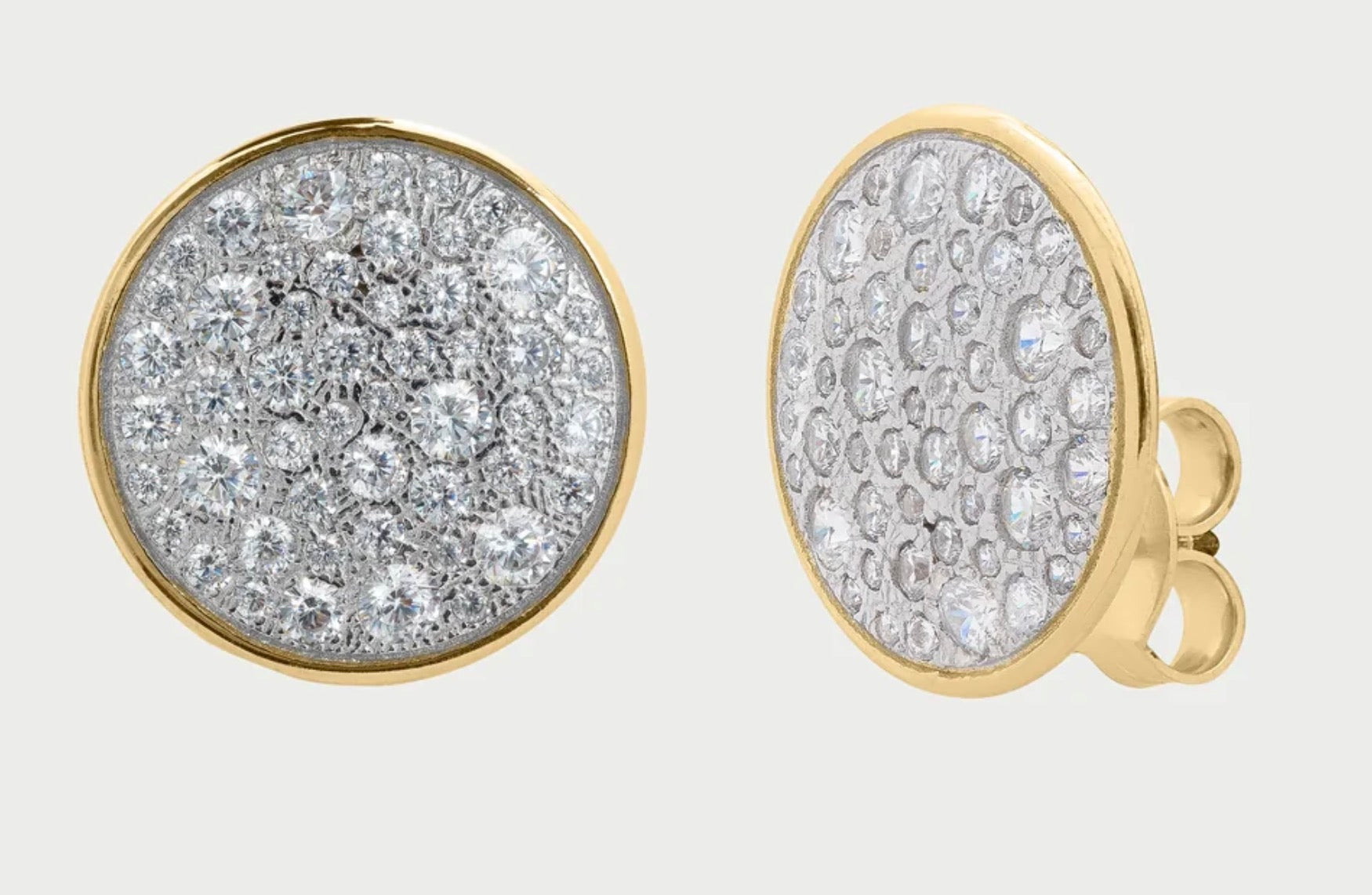 Coppia di orecchini lobo in versione oversized, con soggetto cerchio e pavè di zirconi.