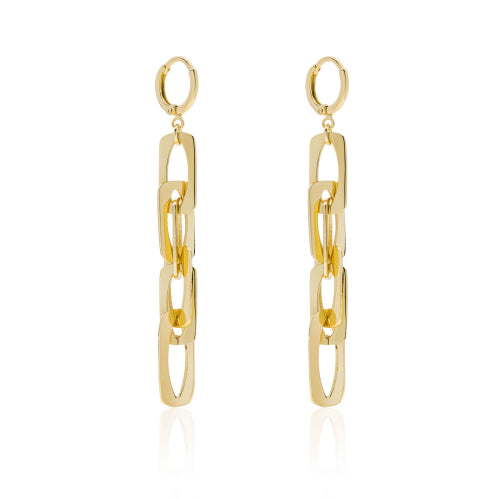 Orecchini pendenti catena quadra concatenata con bagno in oro giallo e chiusura a monachella tonda. Lunghezza 6,50 cm