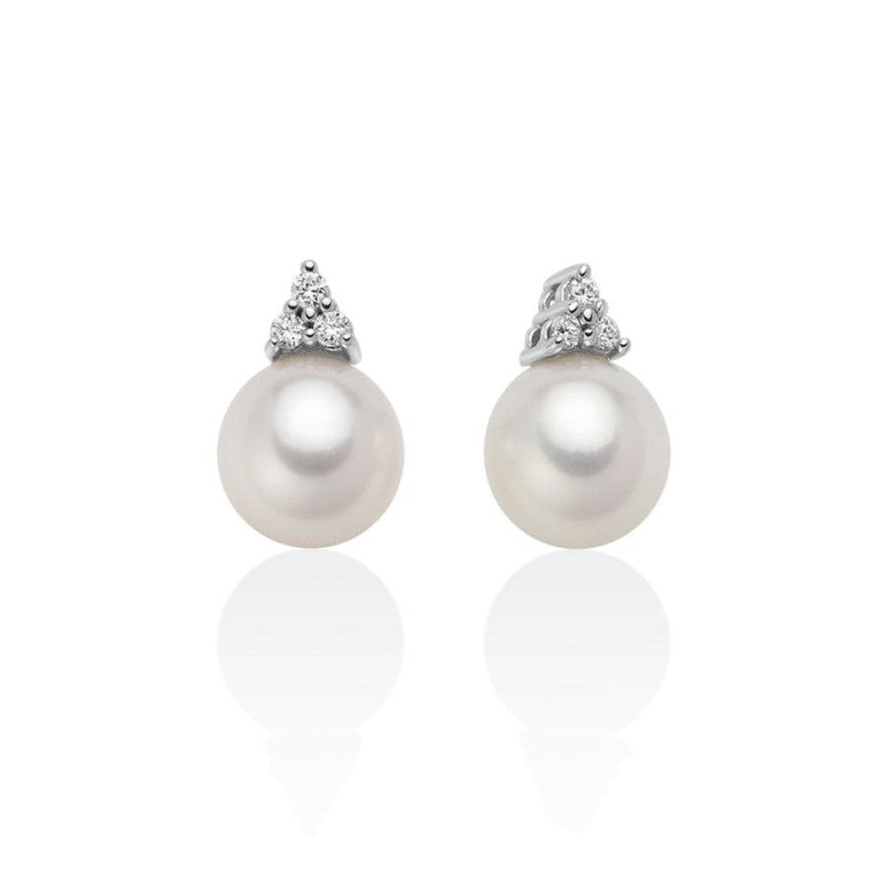 Orecchini con perle bianche coltivate di acqua dolce 7,5-8 mm da Donna impreziositi con sei diamanti taglio brillante 0,09 ct e da una montatura in oro bianco 750 (18KT)
