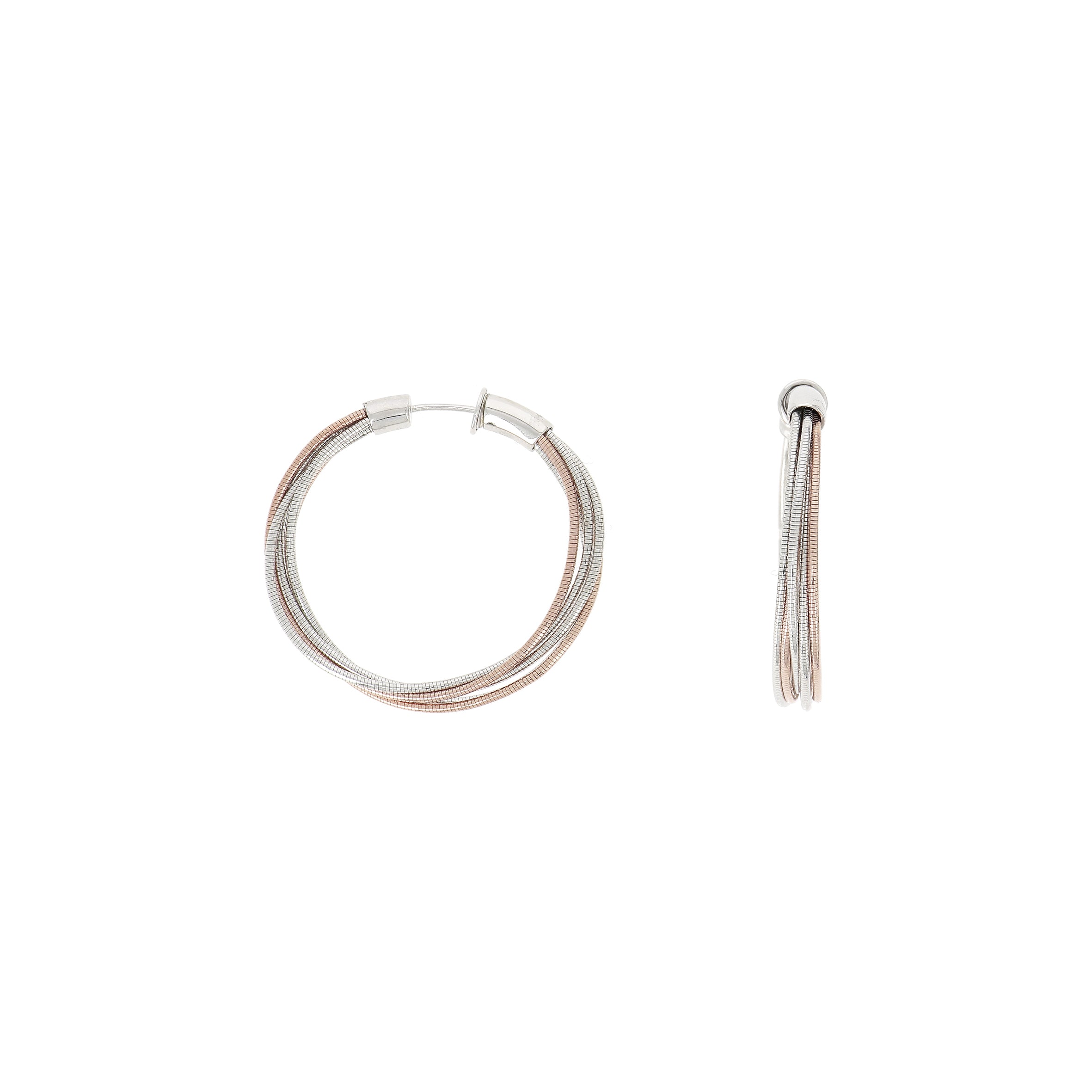 Orecchini cerchi multifili in argento Rodio-Rosa. Un classico dalla struttura innovativa e luminosa.