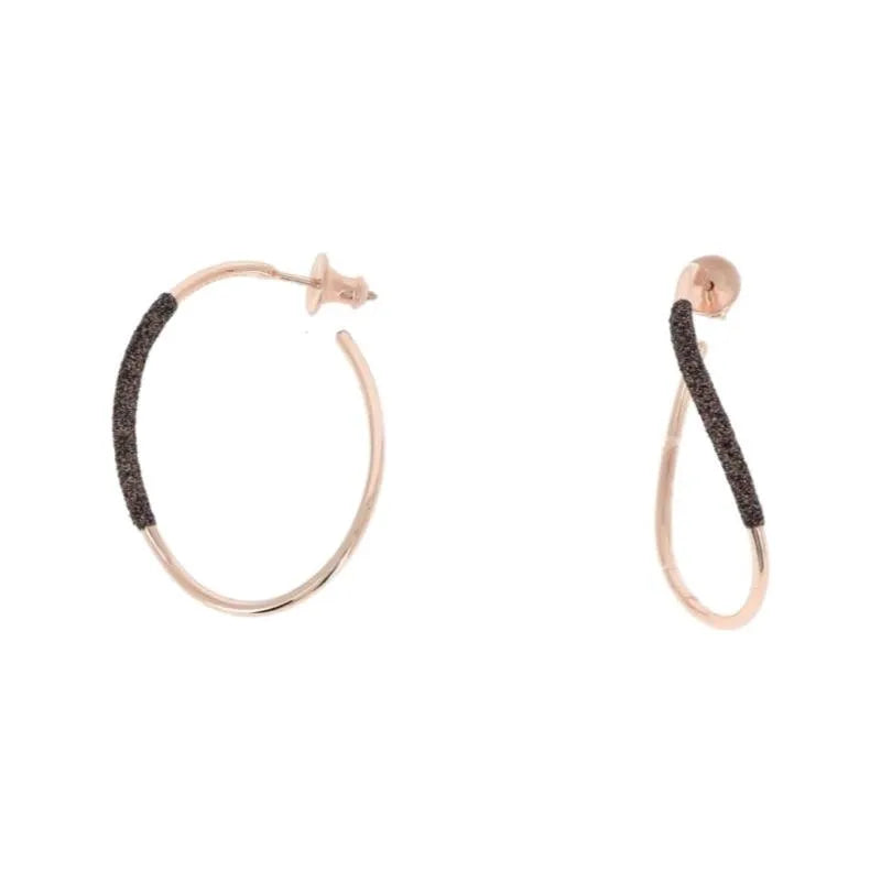 Orecchini cerchio ondulato medio in argento 925 con trattamento galvanico in oro rosa con POLVERE DI SOGNI marrone.