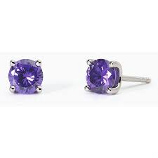 Orecchini da donna a lobo in argento rodiato con zirconi viola.