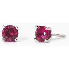 Orecchini da donna a lobo in argento rodiato con rubini sintetici.