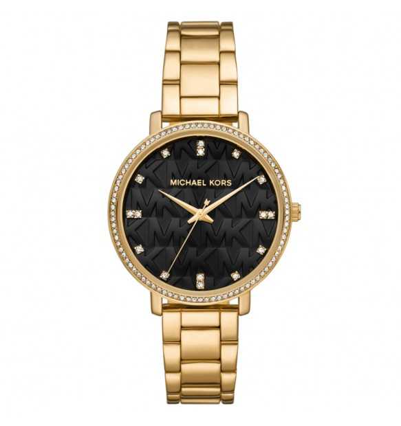 Orologio Michael Kors analogico Solo Tempo movimento al Quarzo. Cassa e Cinturino in Acciaio Inox dorato , Lunetta e fondo impreziositi da Cristalli bianchi. Fondo nero.