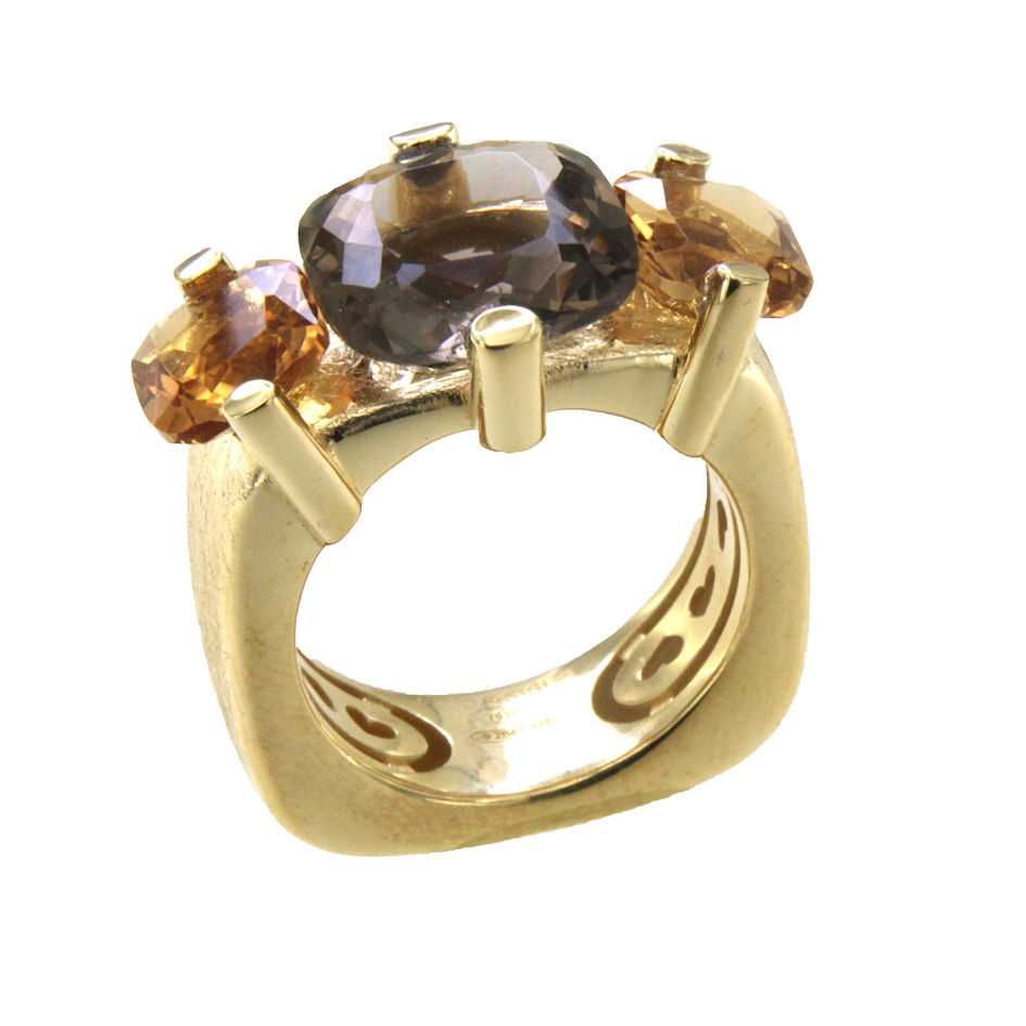 PITTI E SISI ANELLO RAINBOW TRILOGY ARGENTO 925 FINITURA PVD ORO GIALLO QUARZO FUME COGNAC