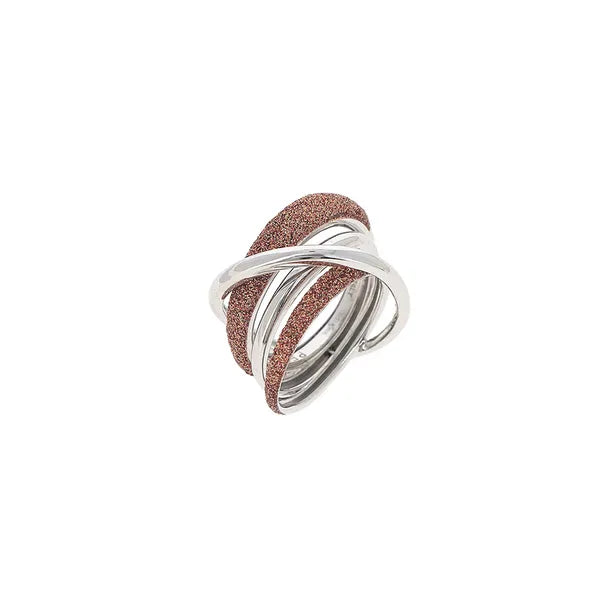 Argento 925 parzialmente ricoperto dallo speciale materiale Polvere di Sogni. Si tratta di micro-particelle ottenute, con la nanotecnologia, dalla lavorazione di materiali naturali minerali, a seconda delle caratteristiche e dei colori che si desiderano ottenere, e hanno una forma esagonale per esaltare l'effetto ottico della riflessione