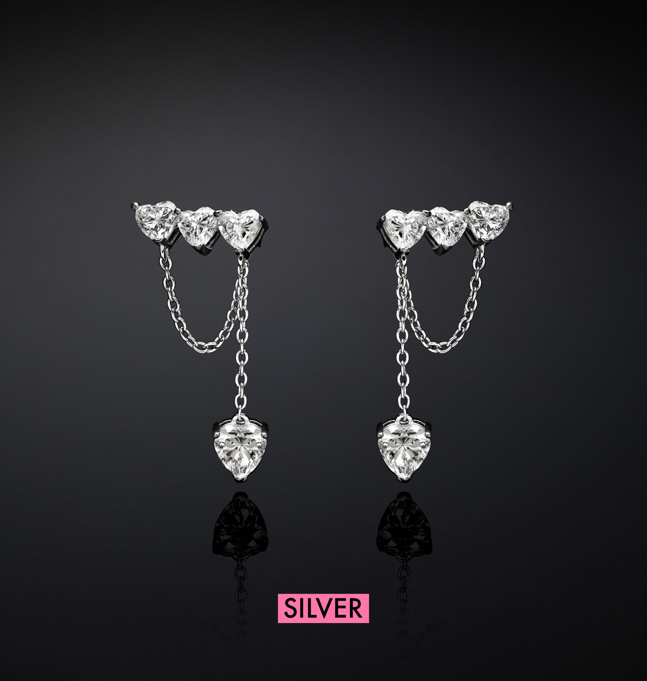 Orecchini realizzati in argento 925 con zirconi bianchi a forma di cuore.