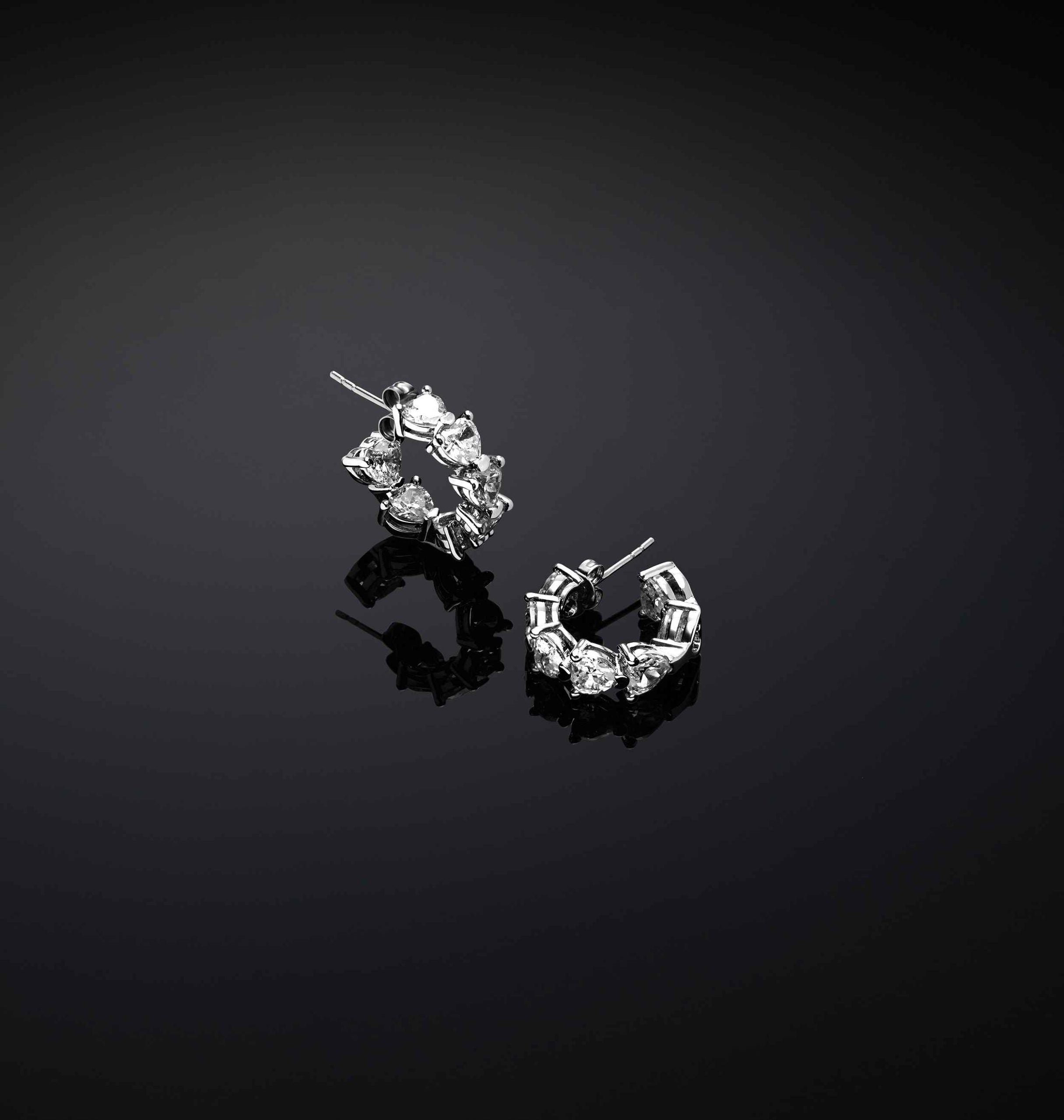 Orecchini da Donna della marca Chiara Ferragni. Il gioiello è realizzato in Argento 925 rappresenta un cerchio con zirconi bianchi incastonati a forma di piccoli cuori. Il diametro è di 2,5 cm. La chiusura è a vitarella