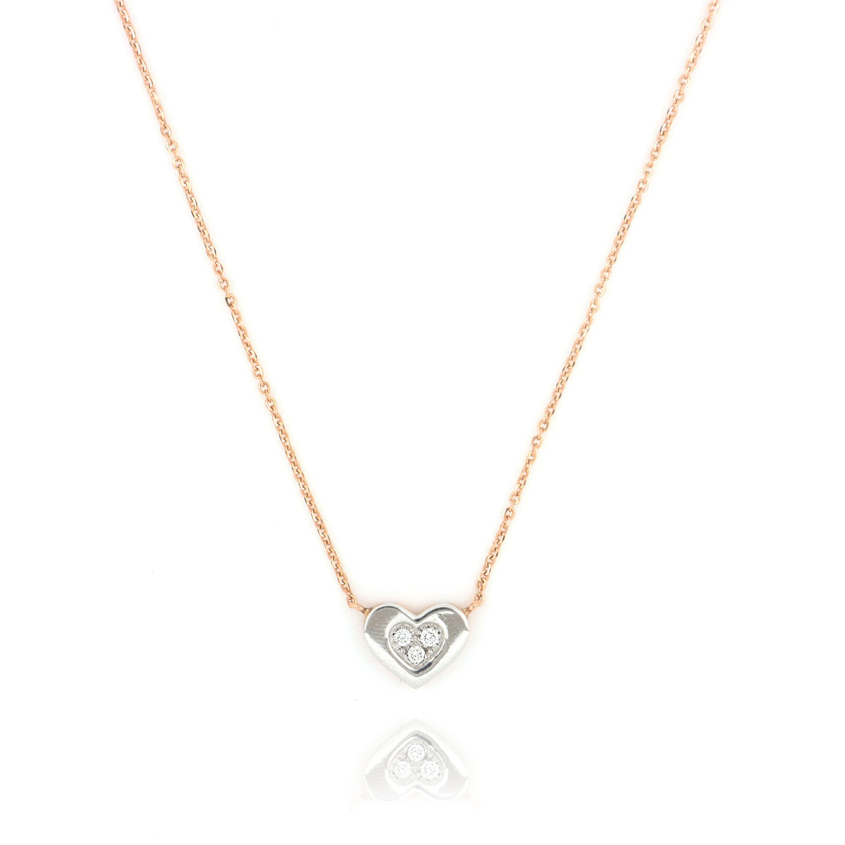 Collana in oro rosa e bianco dove il focus dell'attenzione è sui lucenti diamanti del centrale a cuore, che aprendosi rivela un prezioso segreto.