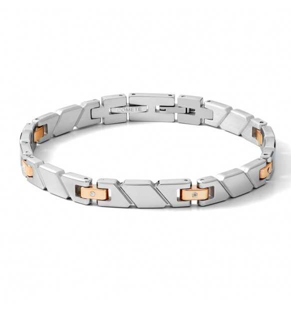 Braccialetto da uomo realizzato in acciaio anallergico con finitura lucida e dettagli placcati oro rosa.